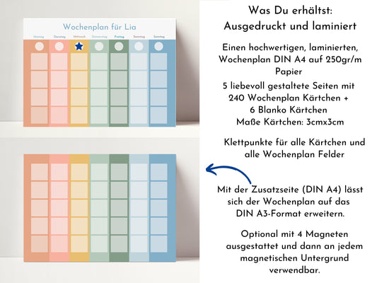 Wochenplan "Schmetterlinge" mit Name personalisiert, 246 Routine Karten, laminiert magnetisch Klett, Routineplan für Kinder und Jugendliche