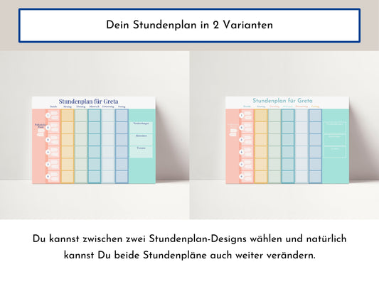 Stundenplan mit 70 Schulfach Karten, personalisiert für die Grundschule, optional magnetisch, Geschenkidee Einschulung "Regenbogen"
