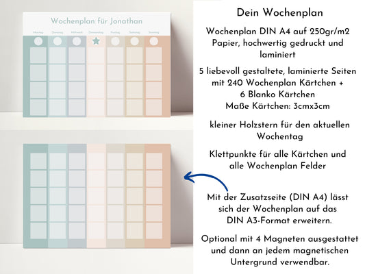 Wochenplan "Salbei und Haselnuss" mit Name personalisiert, 246 Routine Karten, laminiert magnetisch, Routineplan für Kinder und Jugendliche