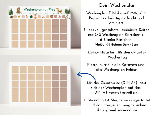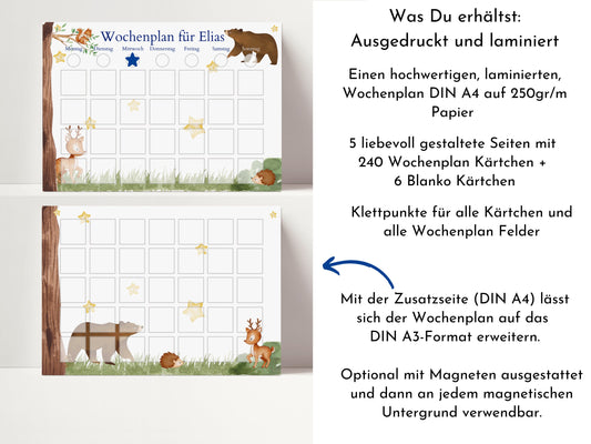 Wochenplan "Wald und Wiese" mit Name personalisiert, 246 Routine Karten, laminiert magnetisch Klett, Routineplan für Kinder und Jugendliche
