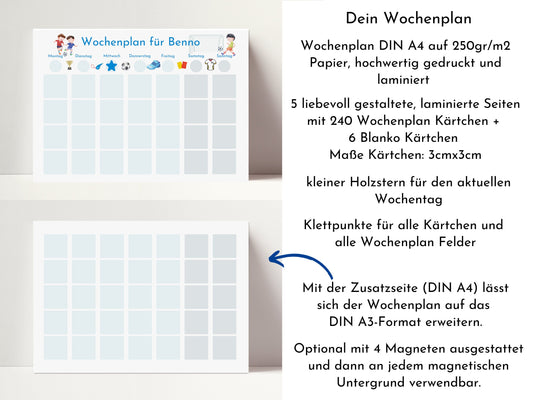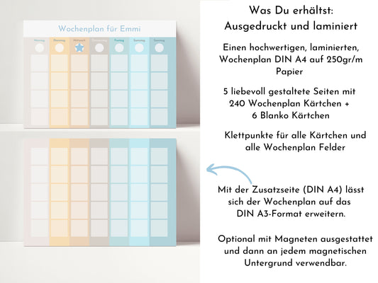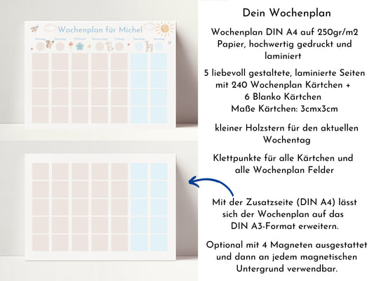 Wochenplan "Himmel und Erde" mit Name personalisiert, 246 Routine Karten, laminiert magnetisch Klett, Routineplan für Kinder und Jugendliche