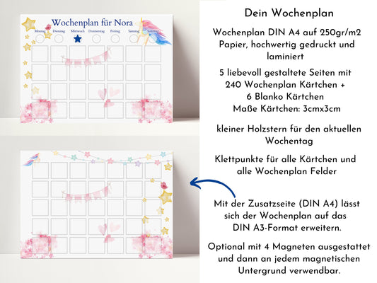 Wochenplan "Einhorn" personalisiert für Kinder, Routineplan mit 246 Routine Karten, laminiert magnetisch, Geschenkidee Geburtstag Kinder