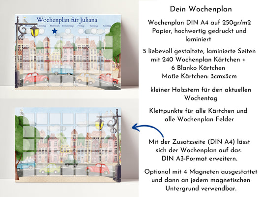 Wochenplan "Stadt" mit Name personalisiert, 246 Routine Karten, laminiert, magnetisch, Montessori Kinder Routineplan von Familie Nordstern