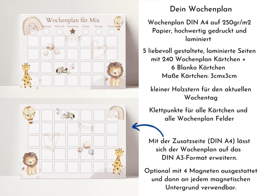 Personalisierter Kinder Wochenplan "Bär und Reh" mit 246 Routine Karten, Montessori Routineplan für einen entspannten Tagesablauf