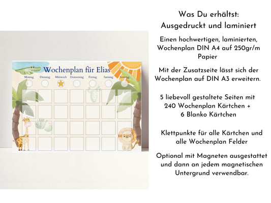 Personalisierter Wochenplan für Kinder und Teenager, 246 Wochenplan Karten, laminiert magnetisch, Geschenkidee "Löwe und Krokodil"