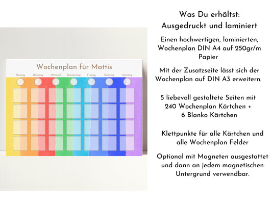 Personalisierter Wochenplan für Kinder und Teenager, 246 Routine Karten, Klett, laminiert, magnetisch, Montessori Routineplan "Regenbogen"