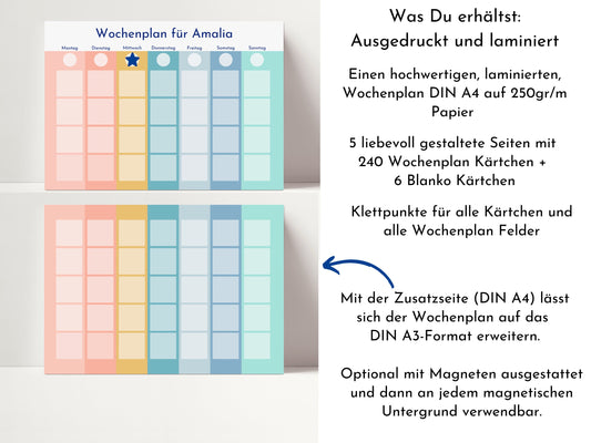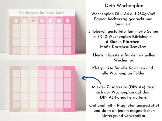 Wochenplan "Rosa Beige" mit 246 Routine Wochenkarten, personalisiert, Klett, laminiert, magnetisch, Routineplan für Kinder Kita und Schule
