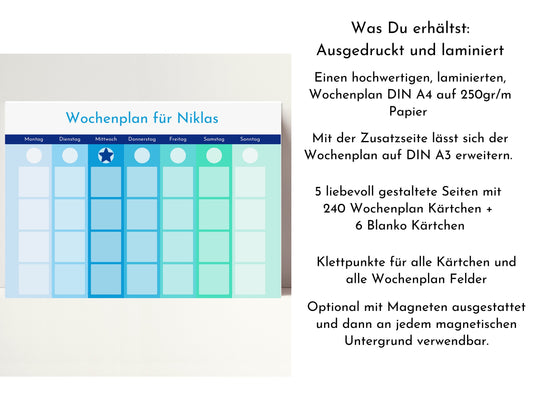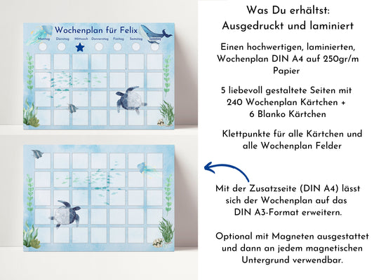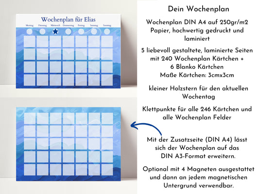 Personalisierter Wochenplan für Kinder und Teenager, 246 Wochenplan Karten, laminiert magnetisch, Geschenkidee "Meeresrauschen"