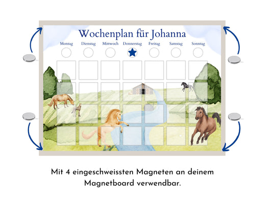 Personalisierter Wochenplan "Pferde" nach Montessori für Kinder mit 246 Routine Karten, Routineplan mit Bildkarten