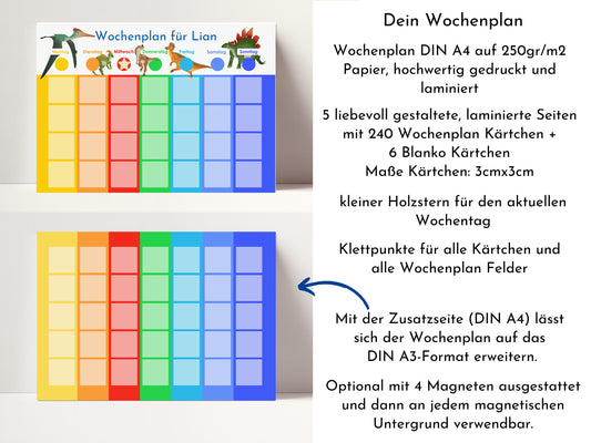 Personalisierter Wochenplan "Montessori-Dinos", 246 Routine Karten, laminiert magnetisch Klett, Routineplan für Kinder von Familie Nordstern