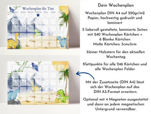 Personalisierter Wochenplan "Dinos und Berge", 246 Routine Karten, Klett laminiert magnetisch, Montessori Routineplan von Familie Nordstern