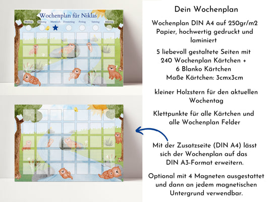 Personalisierter Wochenplan "Otter" mit 246 Routine Karten für Kinder, laminiert magnetisch, Routineplan mit Bildkarten