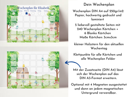 Wochenplan "Wiese" personalisiert für Kinder, 246 Routine Karten, laminiert, optional magnetisch, Routineplan mit Bildkarten nach Montessori