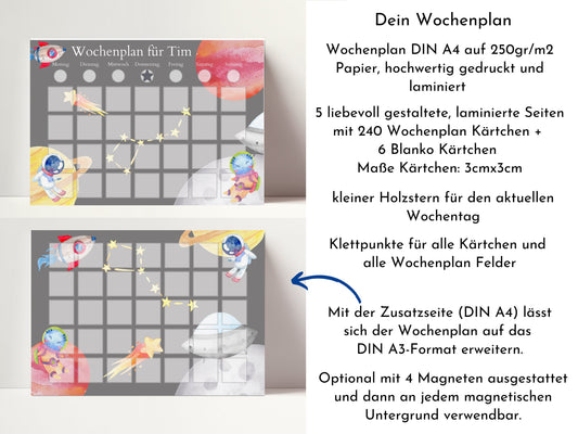 Personalisierter Wochenplan "Universum" für Kinder mit 246 Routine Karten, laminiert, magnetisch, Montessori Routineplan, Familie Nordstern