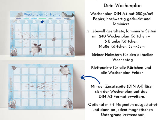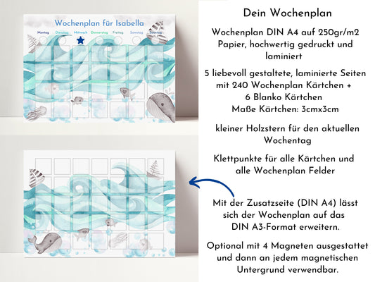Personalisierter Wochenplan "Meer" für Kinder 246 Routine Karten, Klett, laminiert, magnetisch, Routineboard, Montessori Routineplan