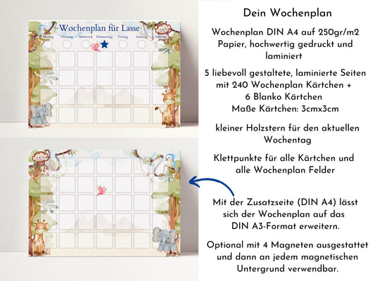 Personalisierter Wochenplan "Urwald" für Kinder mit 246 Routine Karten, laminiert magnetisch, Montessori Routineplan von Familie Nordstern