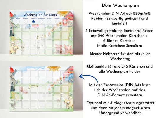 Personalisierter Wochenplan "Bauernhof" mit 246 Routine Karten, optional magnetisch, Montessori Routineplan von Familie Nordstern
