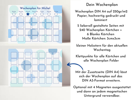 Wochenplan "Blaue Kreise" für Kinder und Teenager, 246 Routine Karten, personalisiert, laminiert, magnetisch, Geburtstag Geschenk Kind