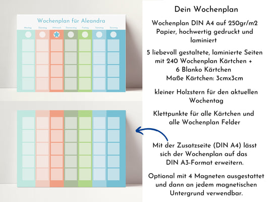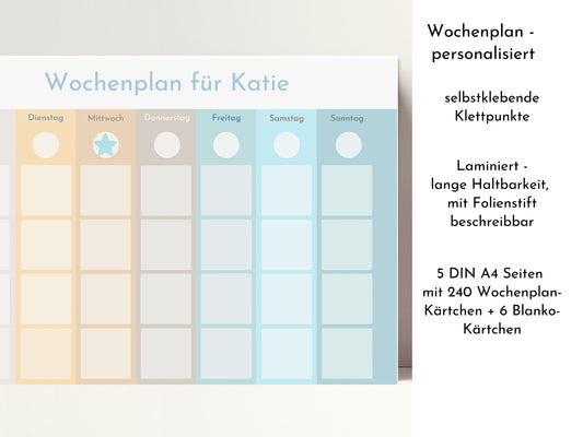 Wochenplaner personalisiert für Kinder und Teenager, 246 Wochenplan Karten, Klett, laminiert, magnetisch, Geburtstag Geschenk Farben "Beach"