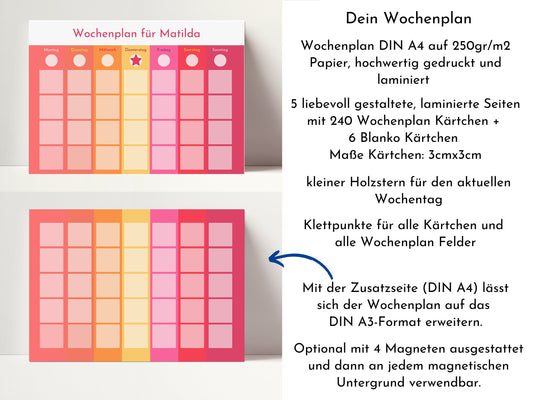 Wochenplan "Sonnenaufgang" mit Name personalisiert, 246 Routine Karten, laminiert magnetisch, Routineplan für Kinder und Jugendliche