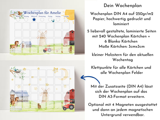 Wochenplan "Bauernhof" mit Name personalisiert, 246 Routine Karten, magnetisch, Routineplan für Kinder von Familie Nordstern