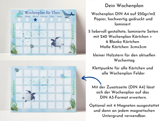 Wochenplan "Meerestiere" mit Name personalisiert, 246 Routine Karten, magnetisch, Geschenk für Kinder, Wochenplaner von Familie Nordstern
