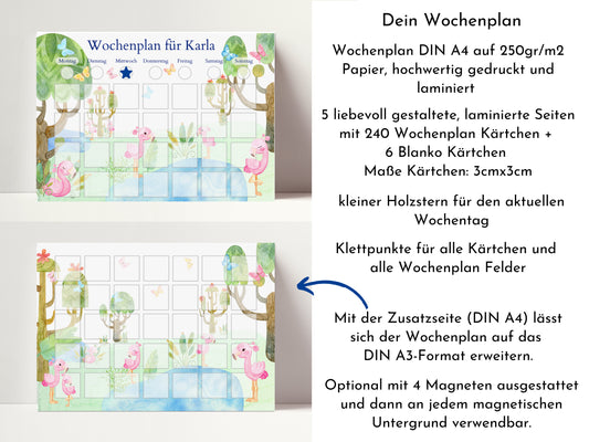 Personalisierter Wochenplan "Flamingo" mit 246 Routine Karten, laminiert, optional magnetisch, Montessori Routineplan von Familie Nordstern