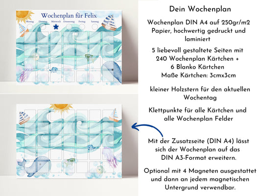 Wochenplan "Seaside" mit Name personalisiert, 246 Routine Karten, laminiert magnetisch, Routineplan für Kinder und Jugendliche