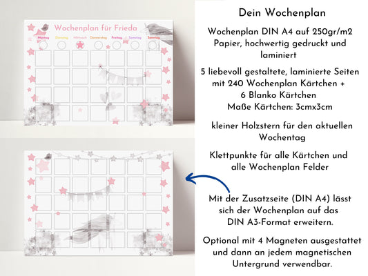 Wochenplaner für Kinder mit 246 Routine Karten, personalisiert laminiert magnetisch DIN A4, Geschenkidee 1. Geburtstag, Wochenplan "Himmel"