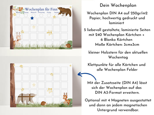 Personalisierter Wochenplan "Bär und Reh" für Kinder, 246 Routine Karten, laminiert, magnetisch, Montessori Kalender von Familie Nordstern