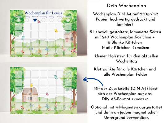 Personalisierter Wochenplan "Garten" für Kinder mit 246 Routine Karten, laminiert magnetisch, Montessori Routineplan von Familie Nordstern