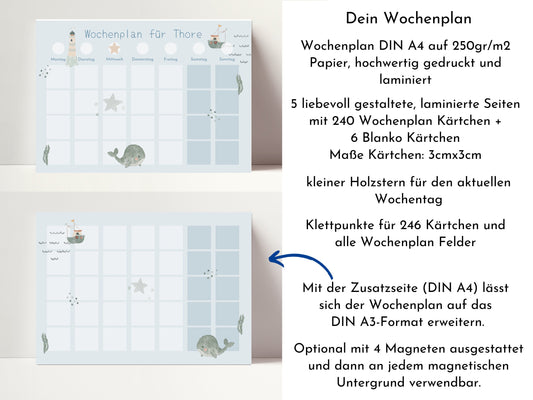 Wochenplan "Segelboote" für Kinder mit 246 Routine Karten, Routineplan personalisiert laminiert magnetisch, Geschenkidee Geburtstag Kinder