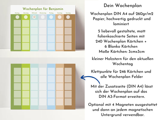 Wochenplan "Himmel und Erde" mit Name personalisiert, 246 Routine Karten, laminiert magnetisch Klett, Routineplan für Kinder und Jugendliche