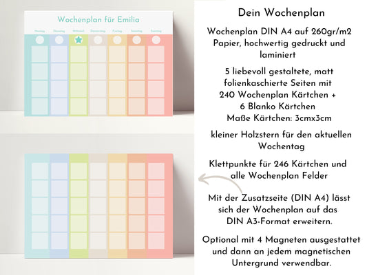 Wochenplan "Fantasie" mit Name personalisiert, 246 Routine Karten, laminiert magnetisch Klett, Routineplan für Kinder und Jugendliche