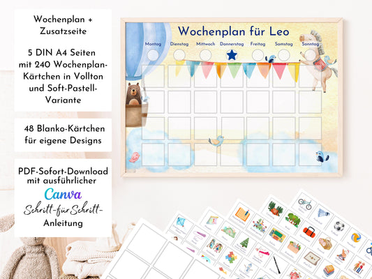 Wochenplan für Kinder, 288 Kärtchen, personalisierbar, PDF Sofort-Download, Geburtstagsgeschenk und zum Verschenken "Bär im Himmel"