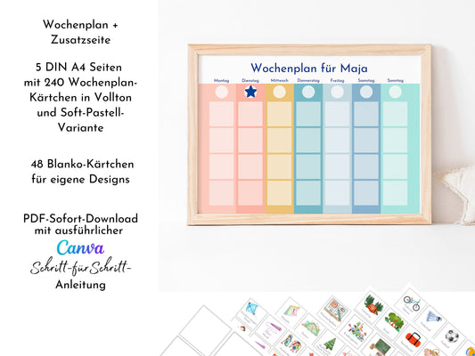 Personalisierter Wochenplan "Regenbogen" für Kinder und Jugendliche, 288 Routine Karten, PDF Sofort-Download, Routineplan nach Montessori