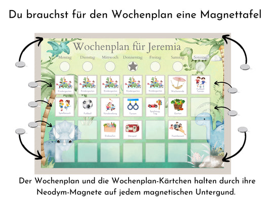 Personalisierter Wochenplan für Kinder und Teenager, 246 Routine Karten, Tagesplan mit 40-80 Magneten, Routineplan "Dinosaurier"