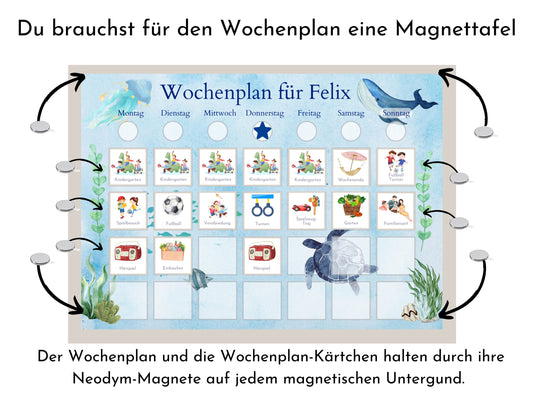 Personalisierter Wochenplan "Ozean" für Kinder und Teenager, 246 Routine Karten, Tagesplan mit 40-80 Magneten, Routineplan