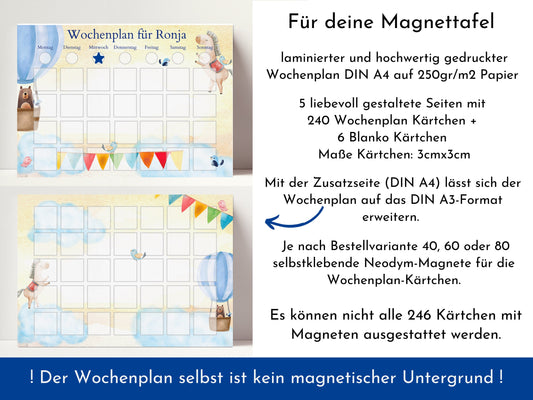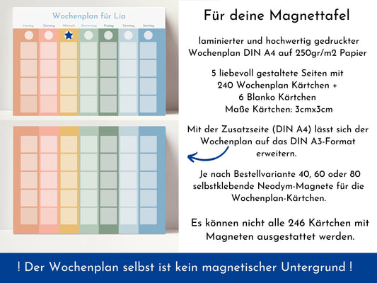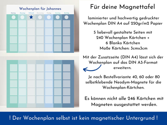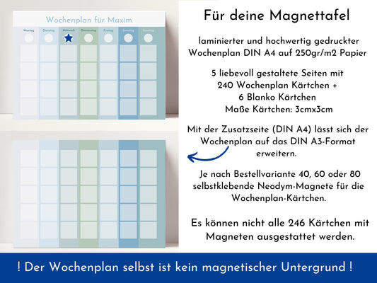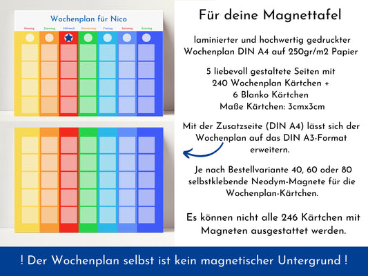 Magnetboard Wochenplan "Montessori" personalisiert für Kinder und Teenager, 246 Routine Karten, 40-80 Magnete, Routineplan Familie Nordstern