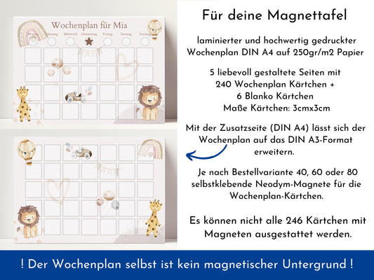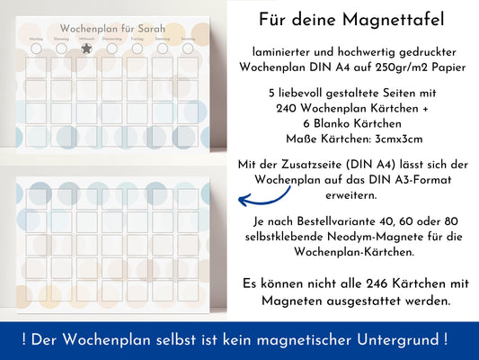 Magnetboard Wochenplan "Boho" personalisiert für Kinder, 246 Routine Karten, Neodym-Magnete, Montessori Routineplan von Familie Nordstern