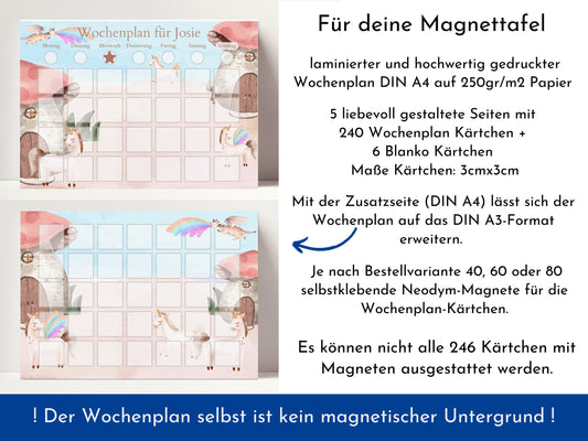 Personalisierter Wochenplan "Drache und Einhorn" für Kinder, 246 Routine Karten, Tagesplan mit 40-80 Magneten, Routineplan mit Bildkarten