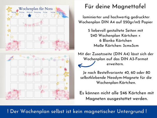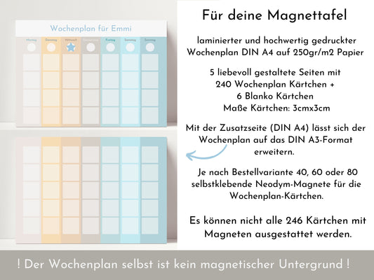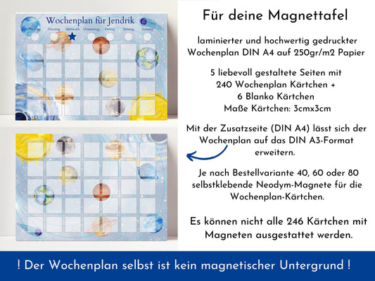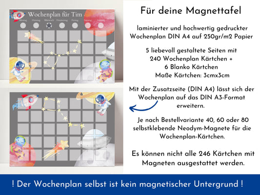 Magnetboard Wochenplan "Universum" personalisiert für Kinder und Teenager, 246 Routine Karten, Tagesplan mit 40-80 Magneten, Routineplan