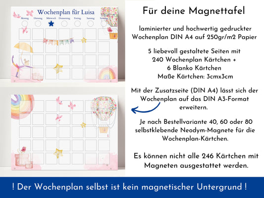 Magnetboard Wochenplan "Ballett" personalisiert für Kinder, 246 Routine Karten, Tagesplan mit 40-80 Magneten, Routineplan mit Bildkarten