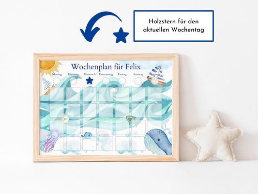 Magnetboard Wochenplan "Segelboote" personalisiert für Kinder und Teenager, 246 Routine Karten, Neodym-Magnete, Montessori Routineplan
