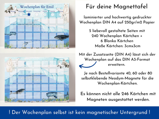 Magnetboard Wochenplan "Polarmeer" für Kinder und Teenager, 246 Routine Karten, 40-80 Neodym-Magnete, Routineplan von Familie Nordstern