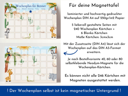 Magnetboard Wochenplan "Giraffe und Nashorn" für Kinder, 246 Routine Karten, 40-80 Magnete, Montessori Routineplan von Familie Nordstern