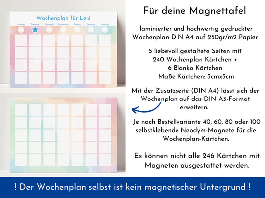 Magnetboard Wochenplan "Aquarell" personalisiert für Kinder und Teenager, 246 Routine Karten, Neodym-Magnete, Montessori Routineplan