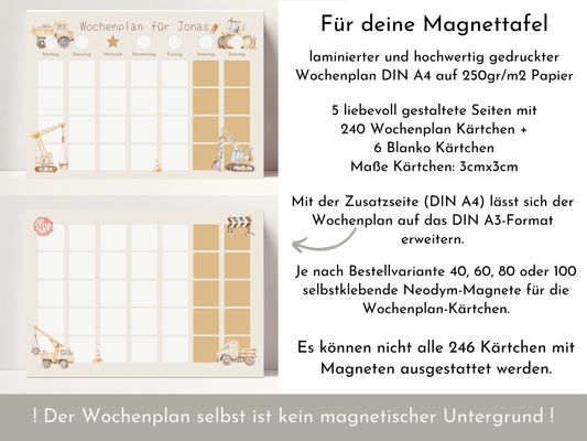 Magnetboard Wochenplan "Baustelle" personalisiert für Kinder, 246 Routine Karten, Magnete, Montessori Routineplan von Familie Nordstern