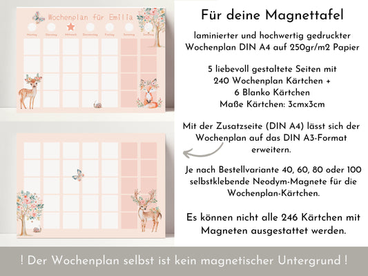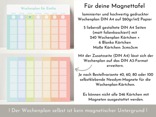 Magnetboard Wochenplan "Fantasie" personalisiert für Kinder und Teenager, 246 Routine Karten, Neodym-Magnete, Montessori Routineplan
