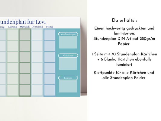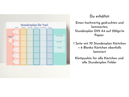 Stundenplan personalisiert 70 Schulfach Kärtchen wiederverwendbar Kindergeburtstag Schulanfang Wochenüberlick Familienorga laminiert